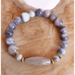 Bracelet composé de pierres d’amazonite, pierre de lave et de larimar pour apporter la confiance, la joie orné de perles tibétaines