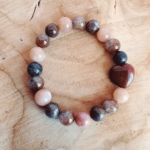 Bracelet composé d’Obsidienne dorée, Obsidienne acajo, Oeil de taureau, Cornaline obsidienne argentée.