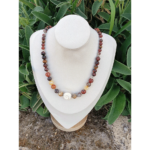 Collier avec un joli coeur en unakite et des pierres de rhodochrosite et unakite