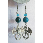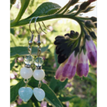Paire de boucles d’oreilles en lépidolite et cœur en quartz rose.