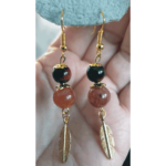 Jolie paire de boucles d’oreilles en quartz rose et quartz fumé.