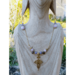 Pendentif ou sautoir aztèque en lapis-lazuli et amazonite pour une belle connexion avec soi même tout en étant relié à son coeur.