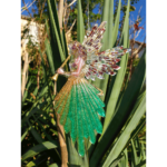Voici une fée orgonite composée de différents minéraux ambre, cristal de roche, œil de tigre amazonite et de métaux