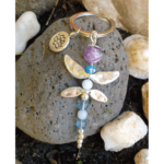 Porte-clés en pierre d’amazonite, apatite et sugilite.