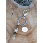 Porte-clés en tourmaline melon d’eau (10mm) et quartz rutilé (6mm).