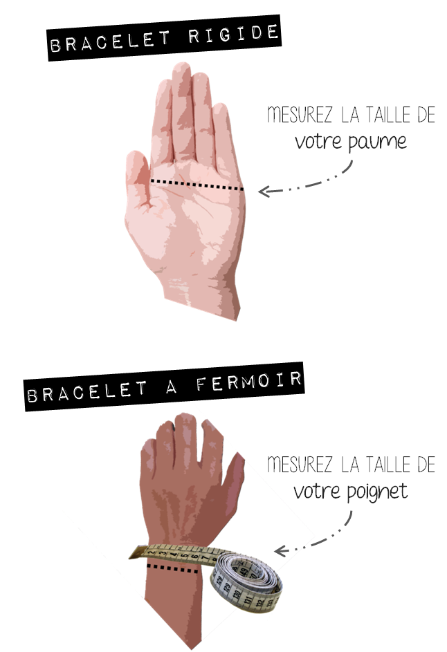 Lorsque vous êtes entre deux tailles, n’hésitez pas à vous orienter sur la taille supérieure afin que le bracelet soit agréable à porter.